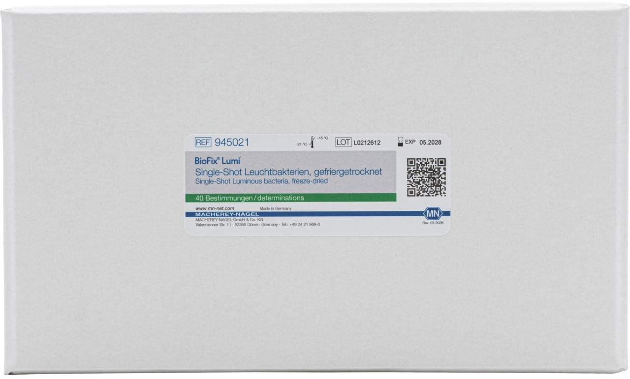 Freeze-dried BioFix luminous bacteria tests use bio luminescence to determine bio toxicity in accordance to ISO 11348‑3. In contrast to chemical single parameter analysis, luminous bacteria tests allow an evaluation of the over-all-toxicity of a sample. The test method is widely used in environmental analysis, particularly for the investigation of wastewater, industrial effluents, eluates from soils or sediments, and for monitoring systems in water supply networks. The international standard DIN EN ISO 11348 regulates the performance of these tests, which are relevant for regulatory analyses in environmental agencies and wastewater analysis. It serves as an internationally recognized basis for quick and easy toxicity measurement for water and wastewater samples.