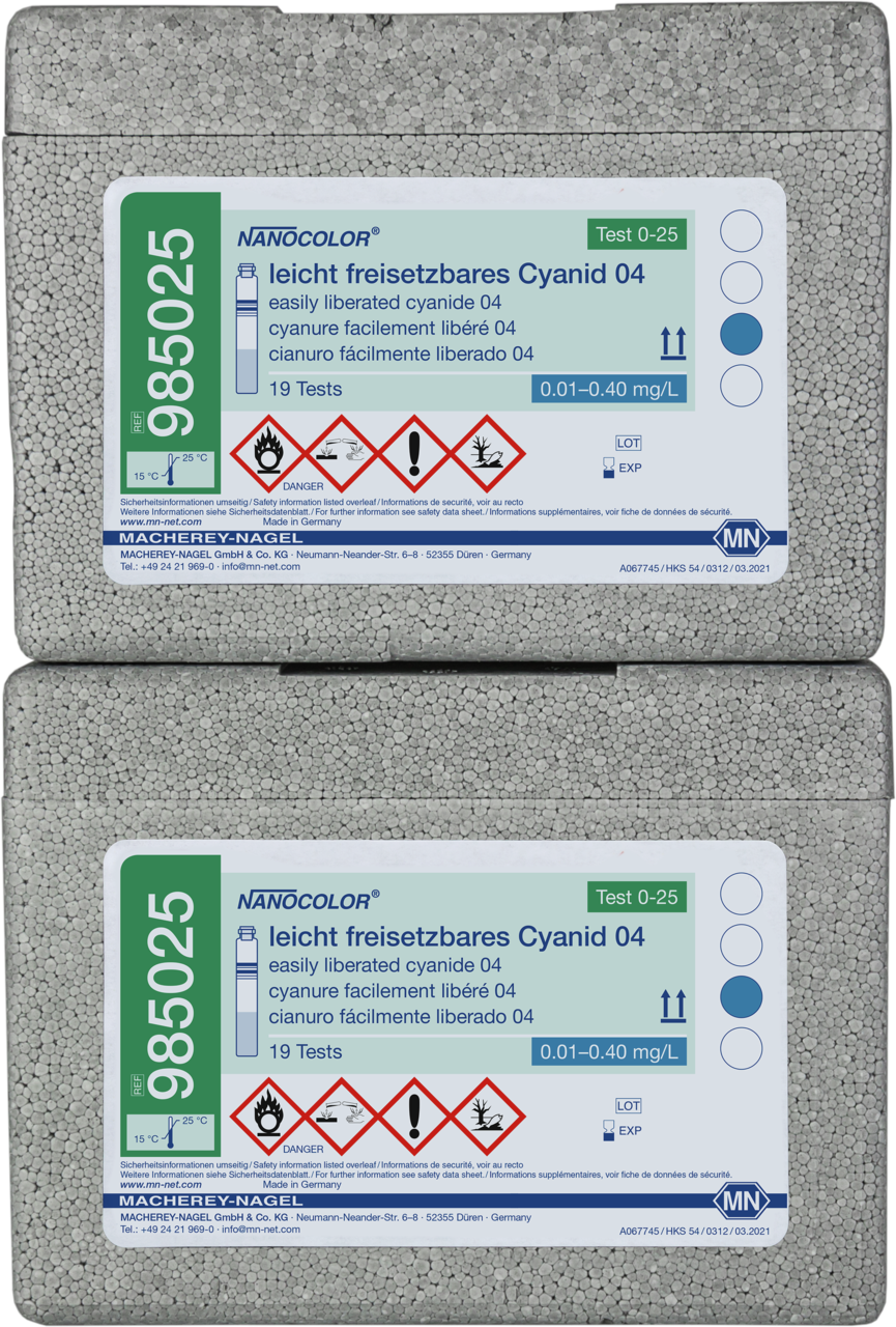 Tube test for the determination of easily liberated cyanide. Precise rapid tests for all kind of water and waste water samples. Time-saving and reliable analysis together with our NANOCOLOR photometers.
