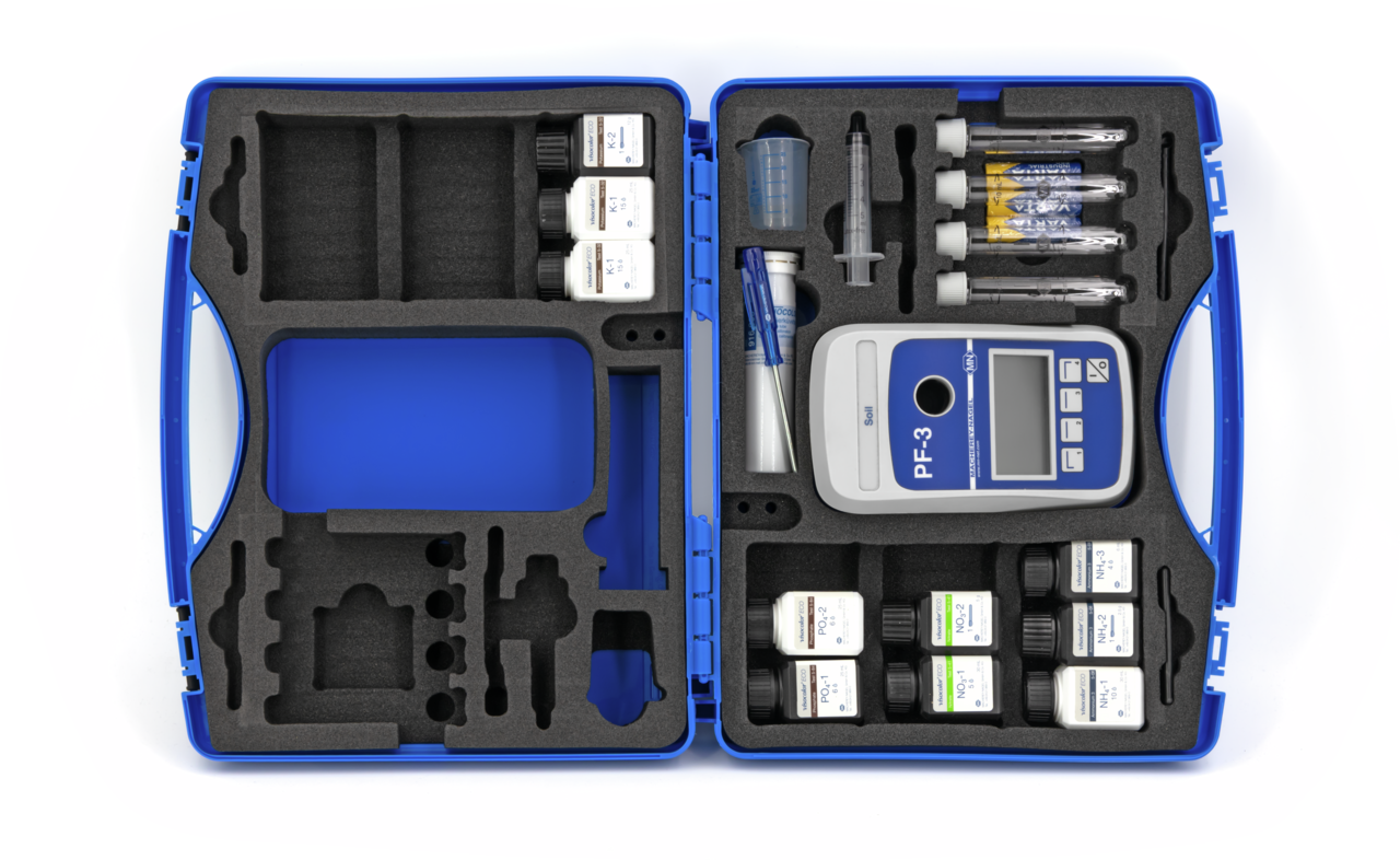 The PF‑3 Soil is the perfect tool for reliable and easy analysis of soil extracts. It combines all important measurements in one handy device. The reagent case is equipped with reagents for Ammonium, Potassium, Nitrate and Phosphate determinations of soil extracts.