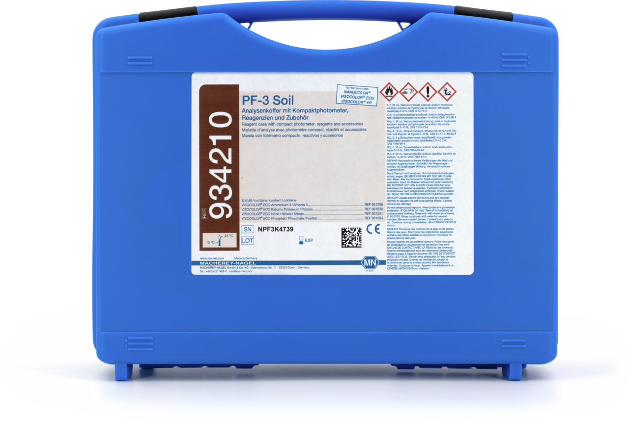 | Scope of delivery | Case, PF-3 Soil, test kits, calibration cuvette, 4 empty tubes, beaker, 5 mL syringe, 3 batteries, manual, instructions and certificate |